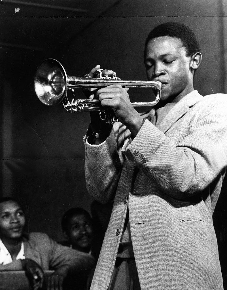 Hugh Masekela playing his Trumpet. Circa 1950’s. © Johncom.